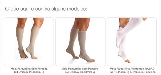 Consulte o médico antes de usar, a escolha de modelos inadequados ou o mau uso das meias de compressão podem ser prejudiciais.