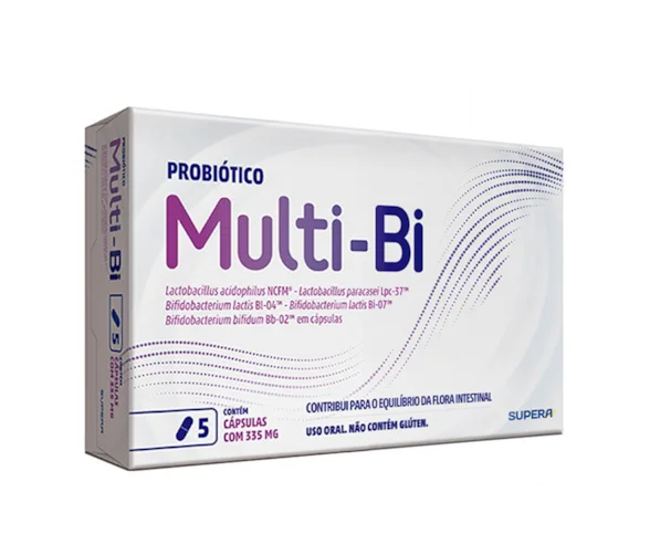 O Multi-Bi Probiótico é um suplemento funcional em cápsulas formulado com uma combinação de cinco cepas probióticas: Lactobacillus acidophilus NCFM, Lactobacillus paracasei Lpc-37, Bifidobacterium lactis Bi-07, Bifidobacterium lactis Bl-04 e Bifidobacterium bifidum Bb-02. Esses micro-organismos vivos atuam diretamente no equilíbrio da flora intestinal, promovendo benefícios à saúde digestiva e contribuindo para o bom funcionamento do intestino.